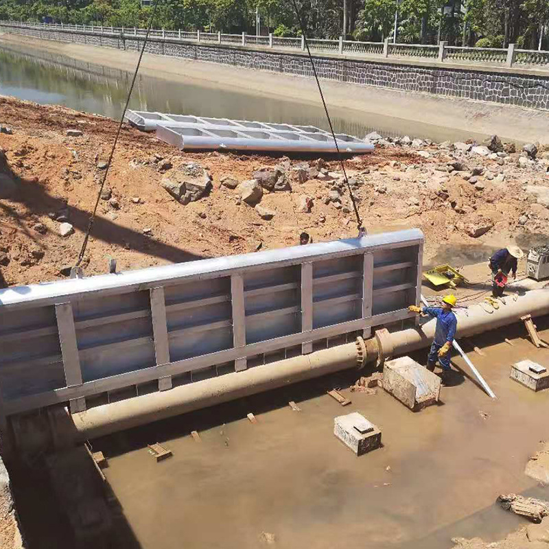弧型閘門組成,安裝,弧形閘門是由面板、豎梁、橫梁(主梁、次梁)和上下支壁等共同組成的具有弧形表面的鋼結(jié)構(gòu)?;⌒伍l門具有弧形的擋水面板,當(dāng)弧形擋水面板受水壓后,通過支臂傳給固定邊墩的2個(gè)支座。啟閉時(shí)整個(gè)閘門繞轉(zhuǎn),鉸軸的旋轉(zhuǎn)動(dòng)中通常與弧形擋水面板的圓心重合,因而水壓力的合力總是通過轉(zhuǎn)動(dòng)中。